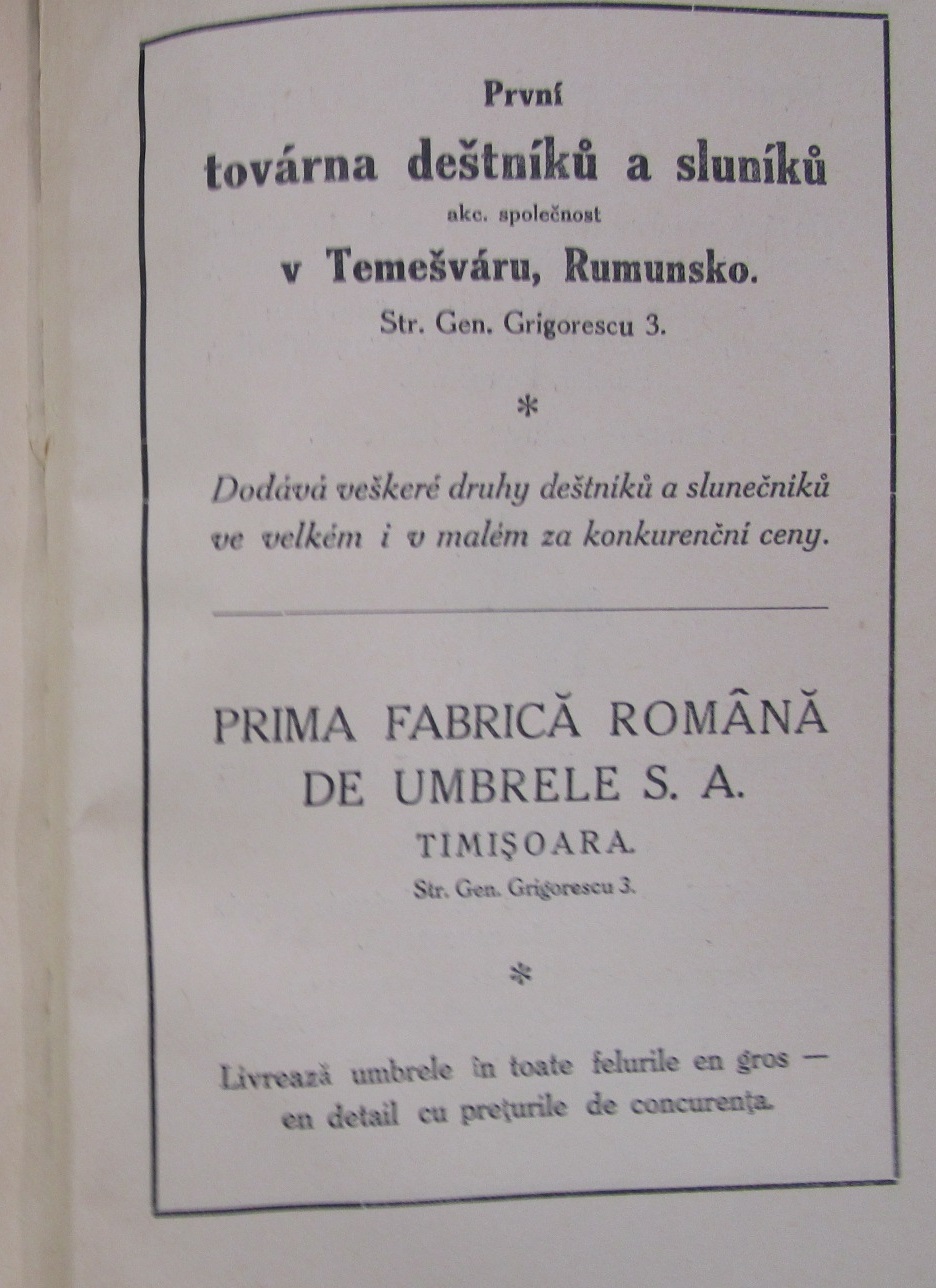 Pro zajímavost, takhle vypadaly reklamy sponzorů v knize Romana Urbana „Čechoslováci v Rumunsku“ (1930), na kterou tady často odkazuju…
