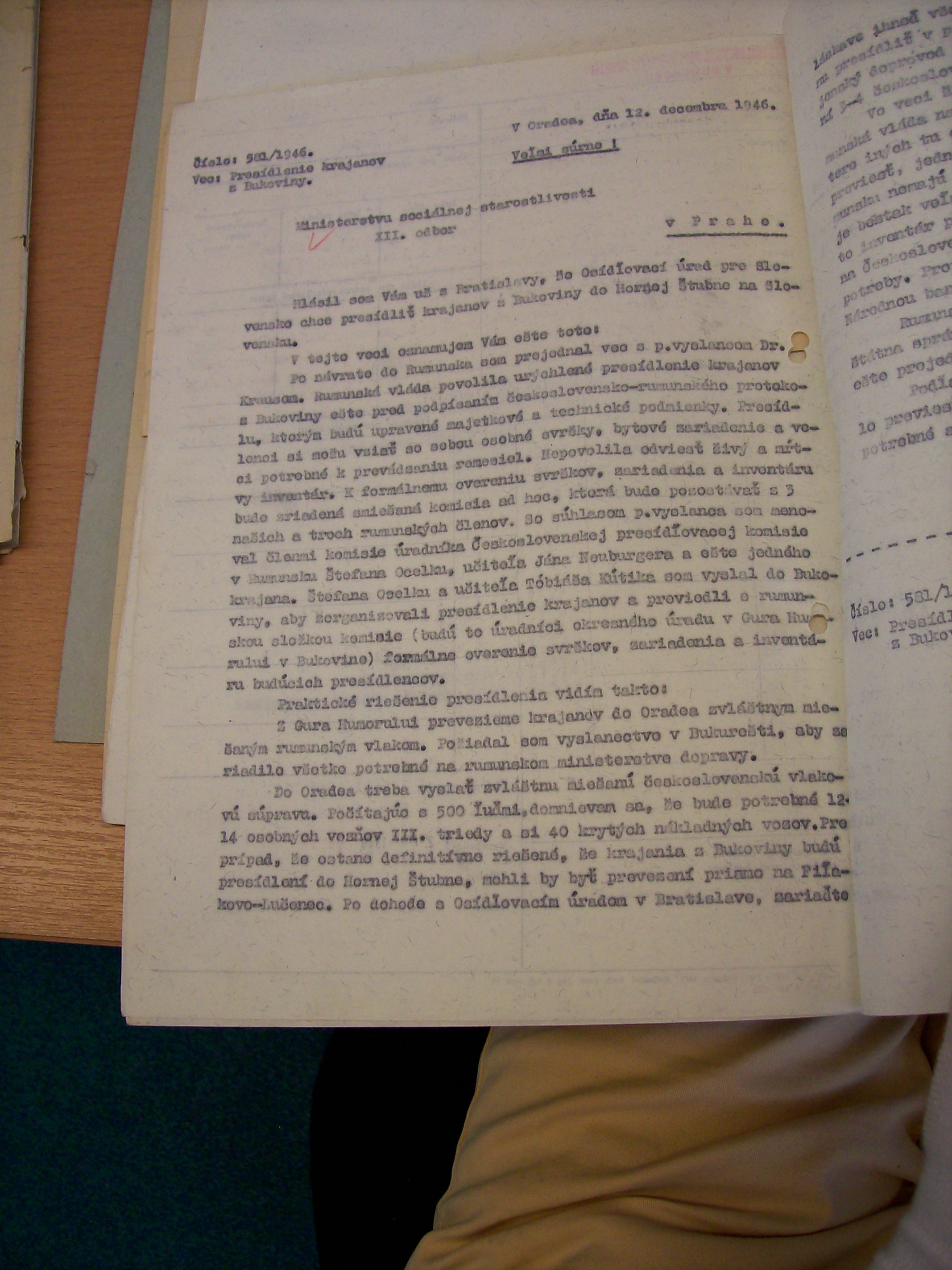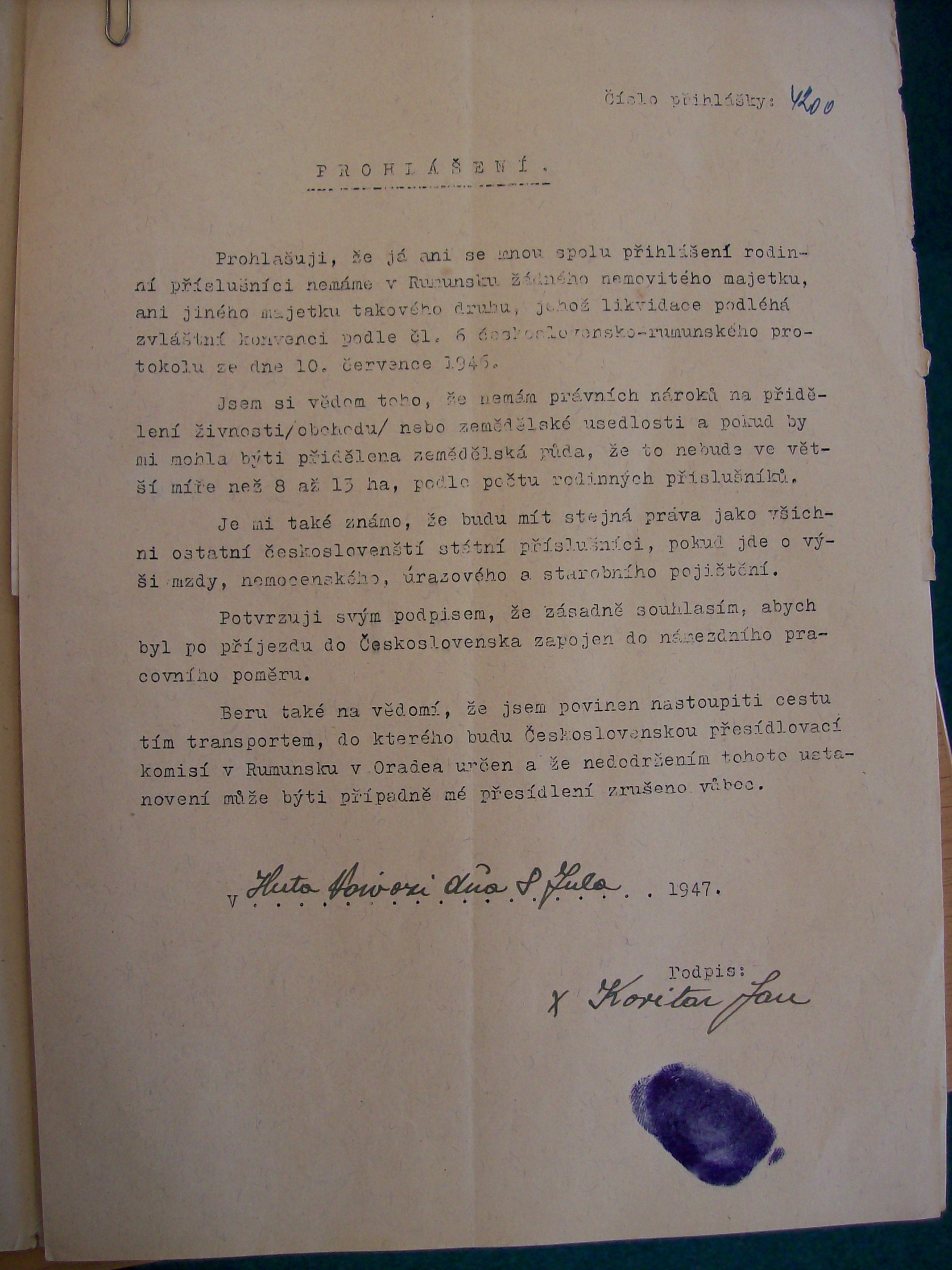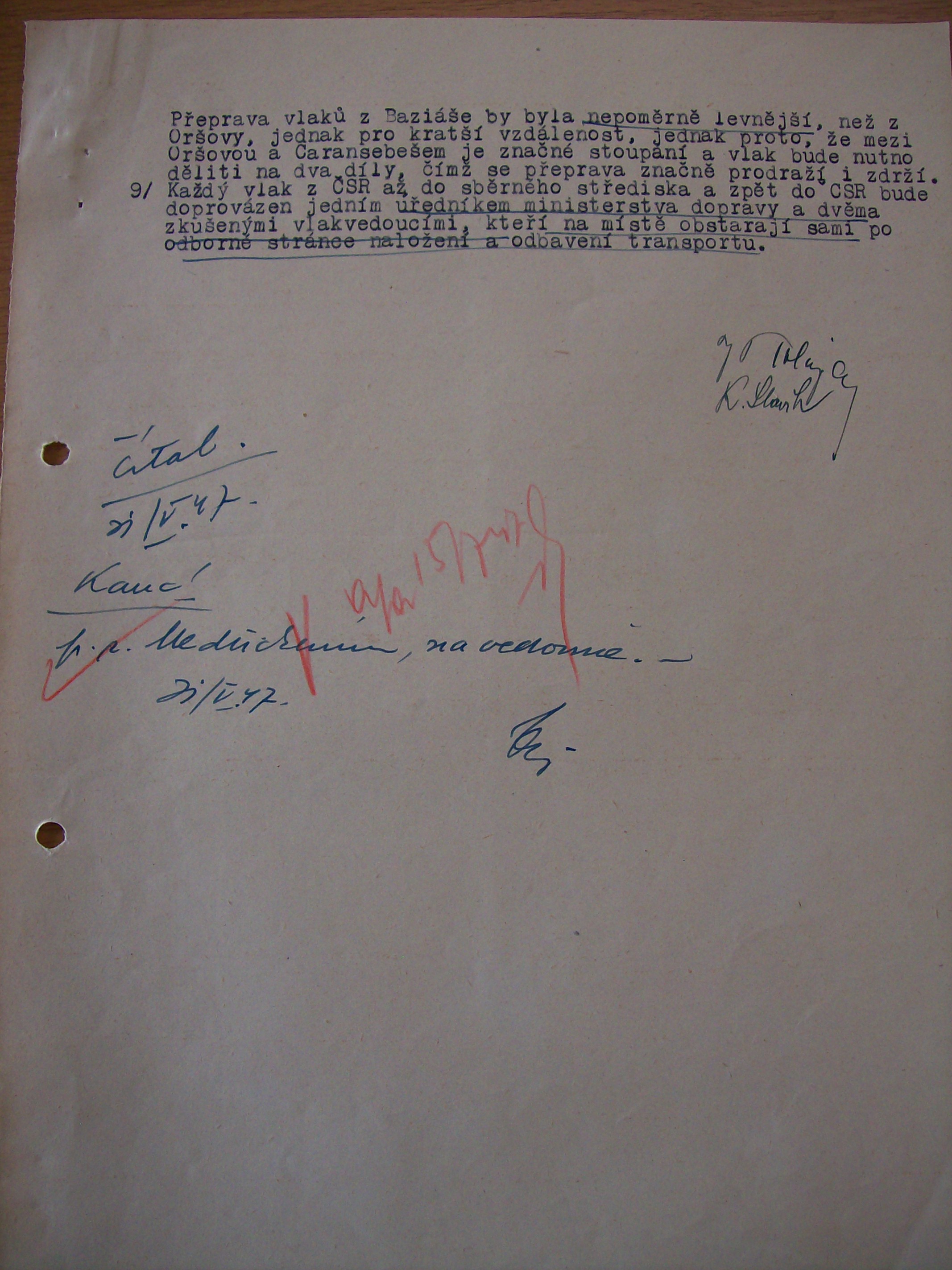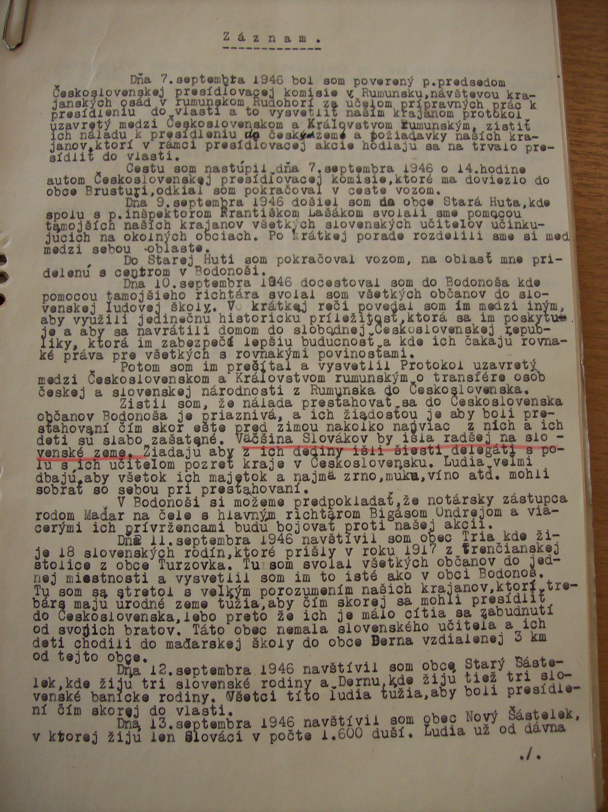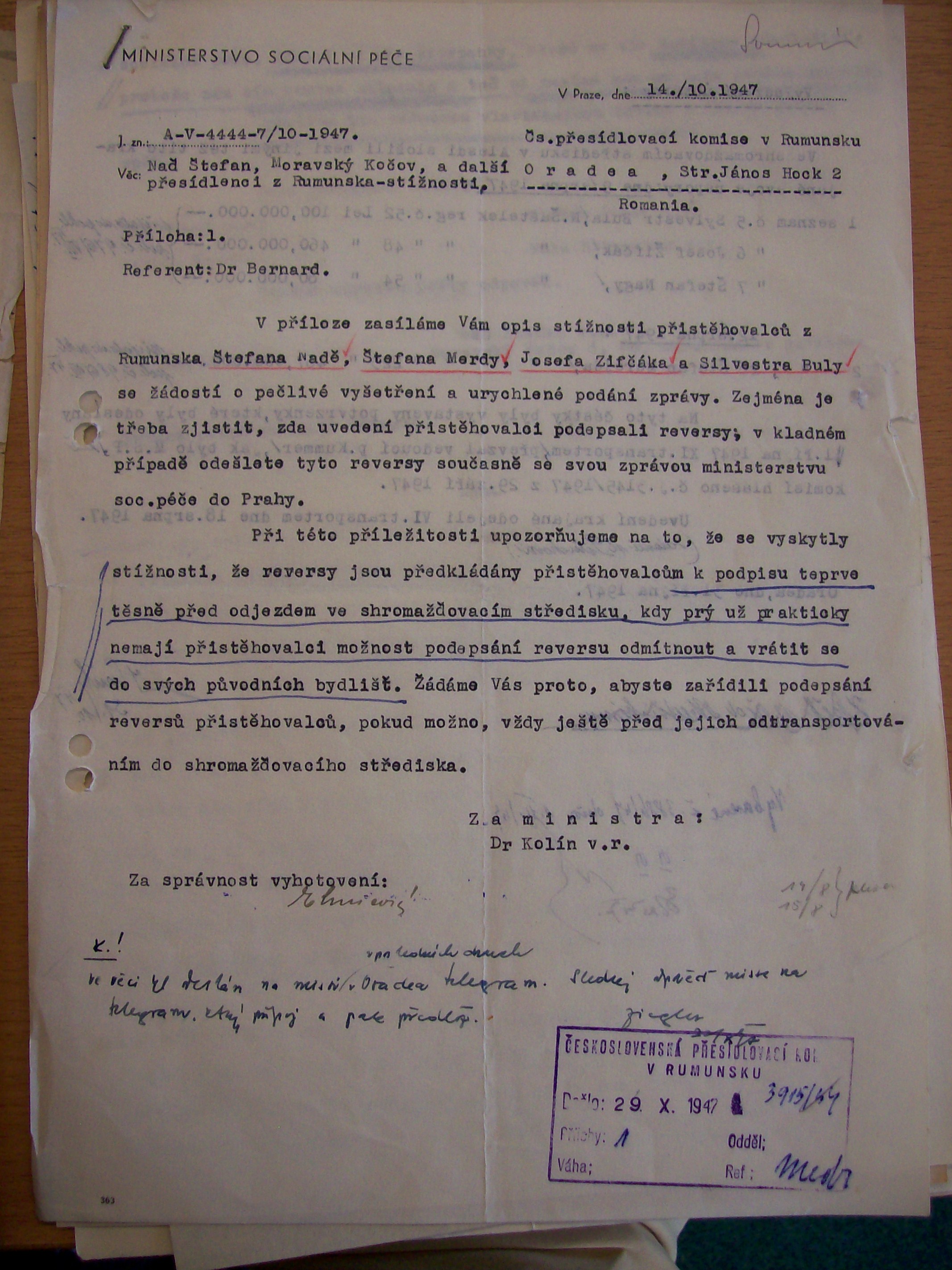 Na této stránce najdete archivní dokumenty ilustrující, jak v letech 1947-49 probíhala organizovaná reemigrace rumunských Slováků do ČSR. (Dokumenty vesměs pocházejí z archivu Československé přesídlovací komise v Oradeji, uloženého v Národním archivu ČR.)