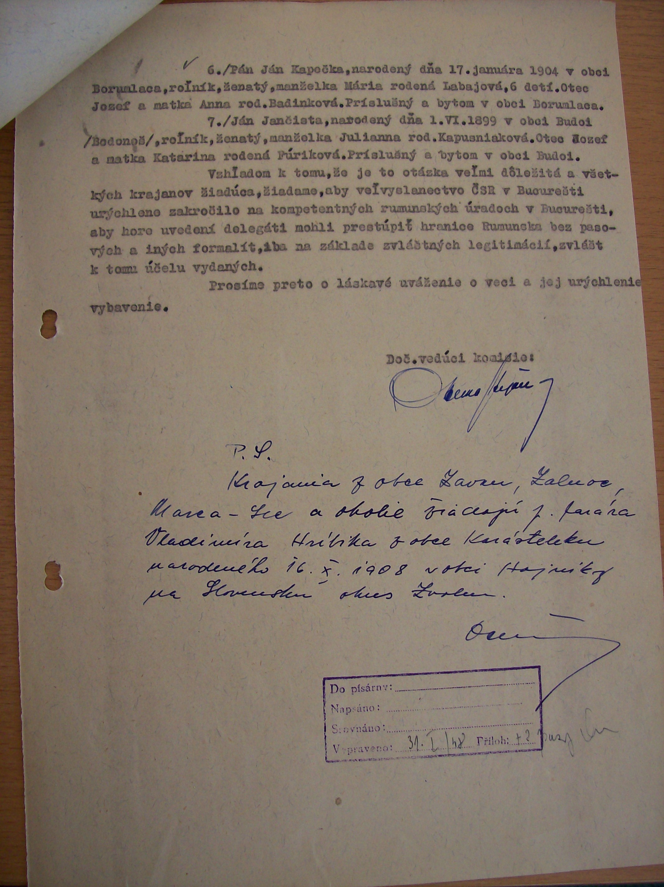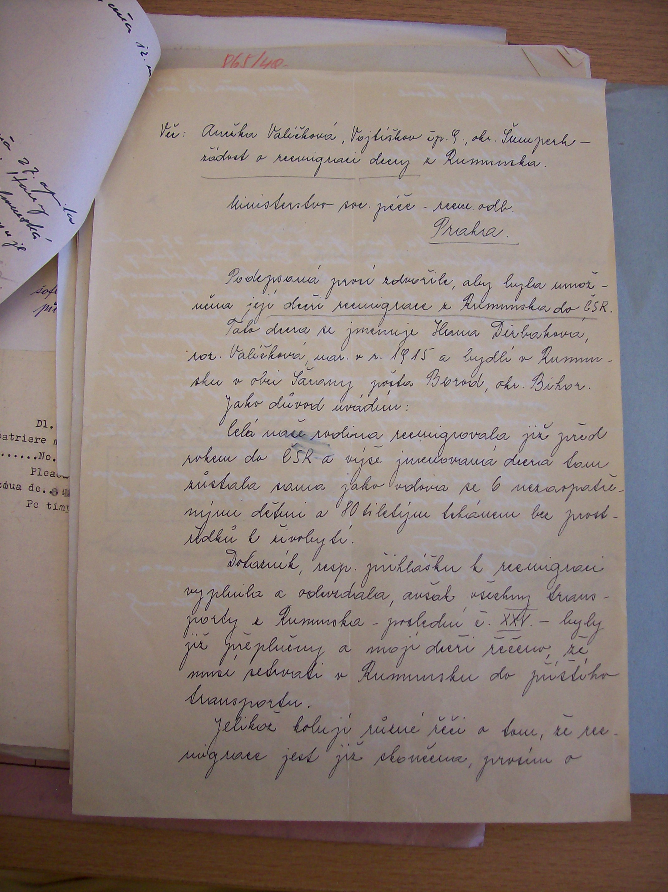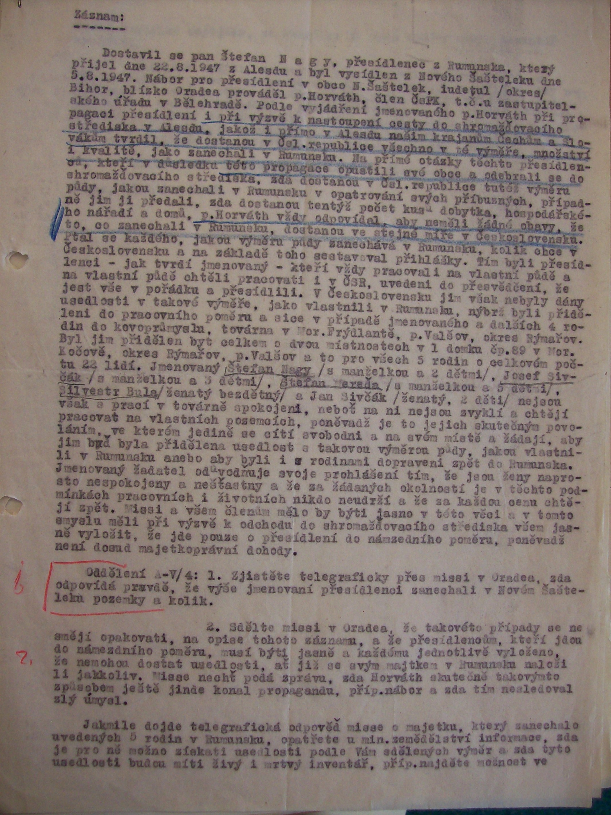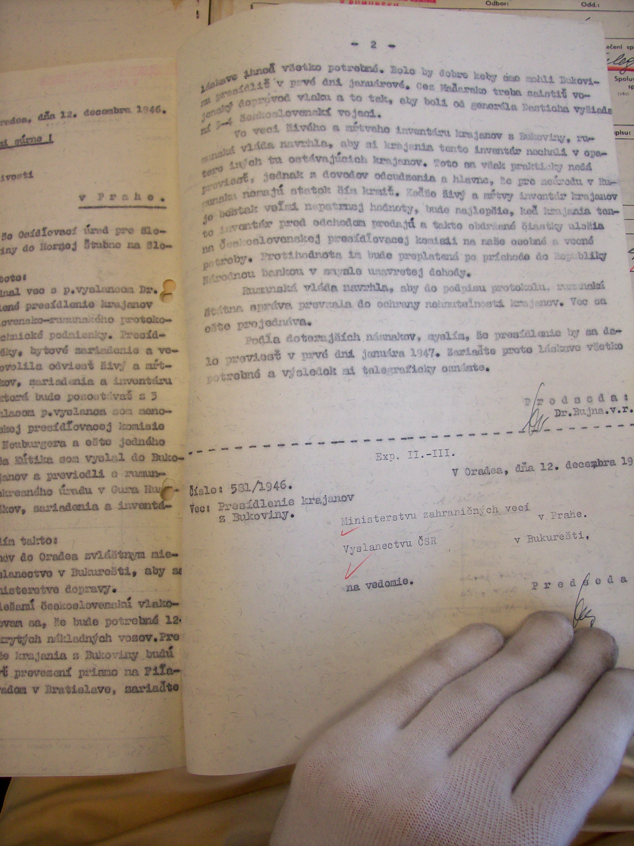 Na této stránce najdete archivní dokumenty ilustrující, jak v letech 1947-49 probíhala organizovaná reemigrace rumunských Slováků do ČSR. (Dokumenty vesměs pocházejí z archivu Československé přesídlovací komise v Oradeji, uloženého v Národním archivu ČR.)