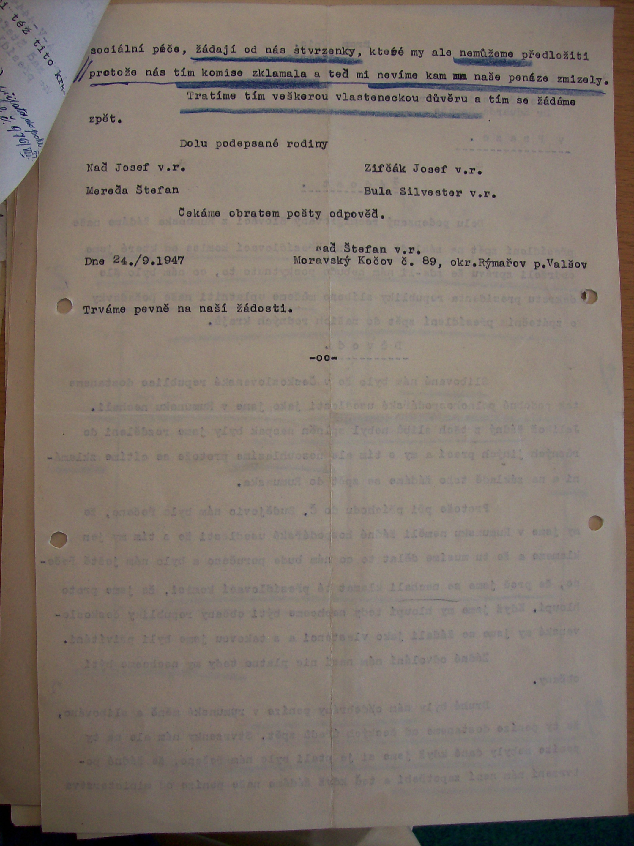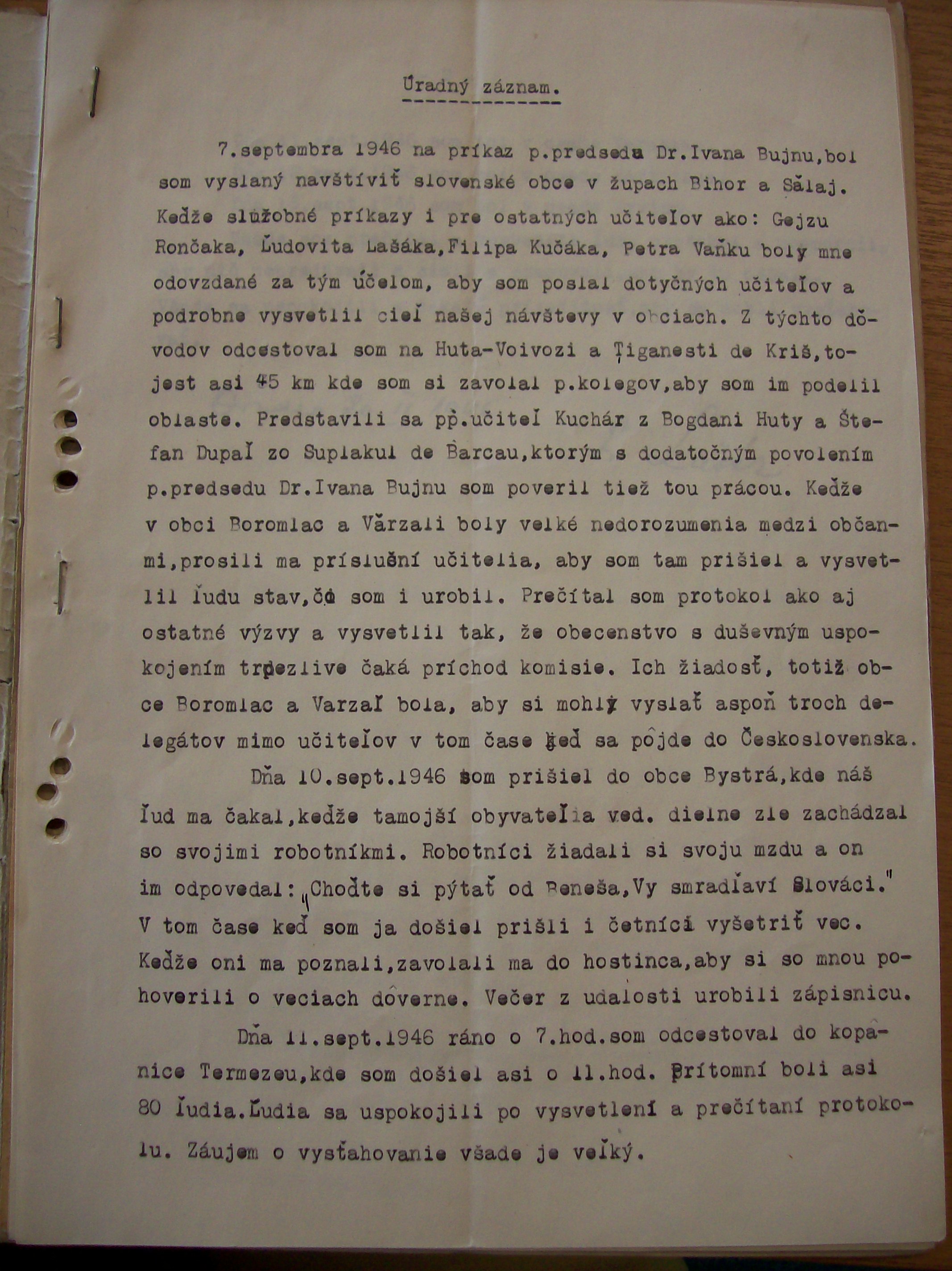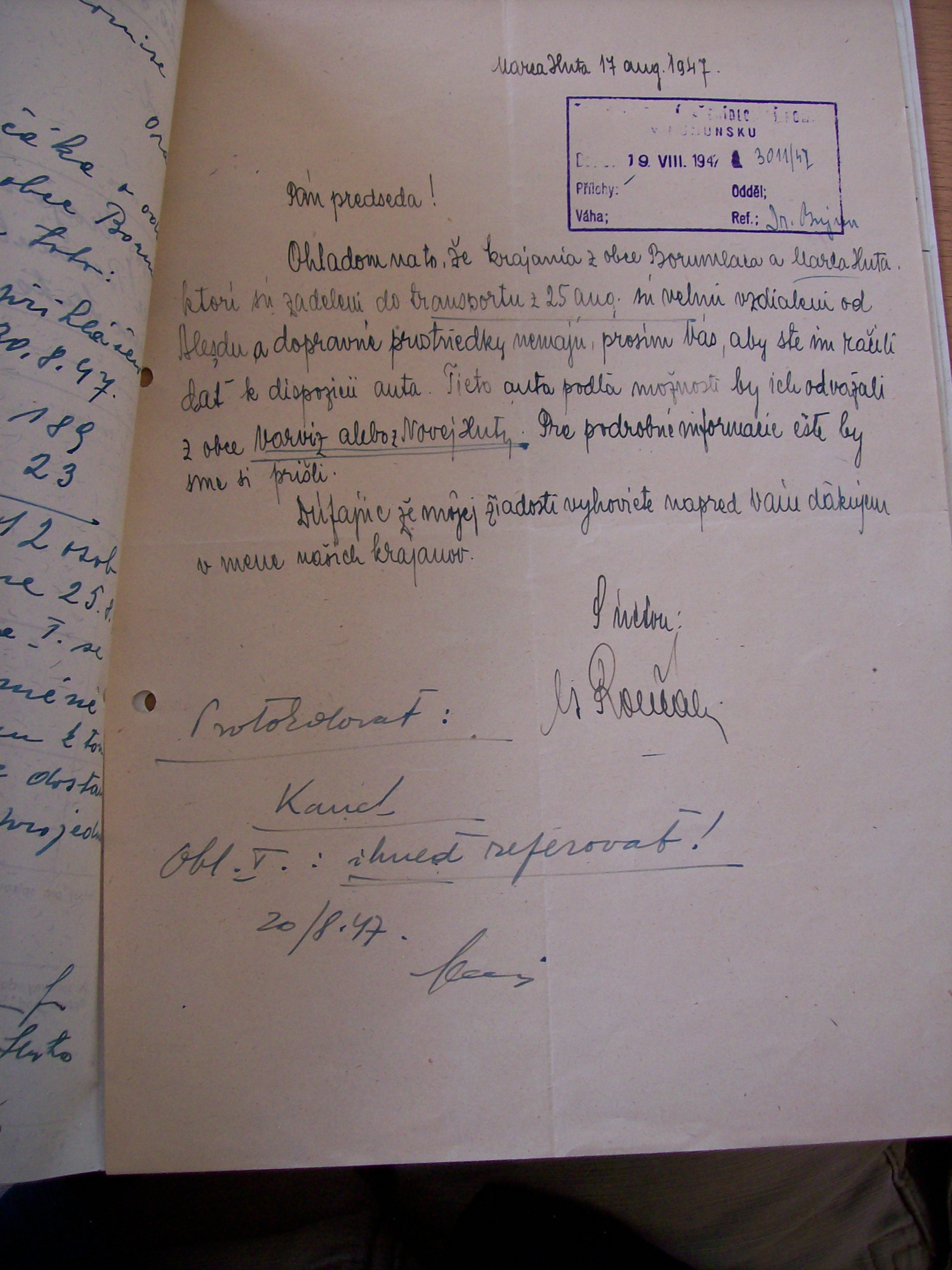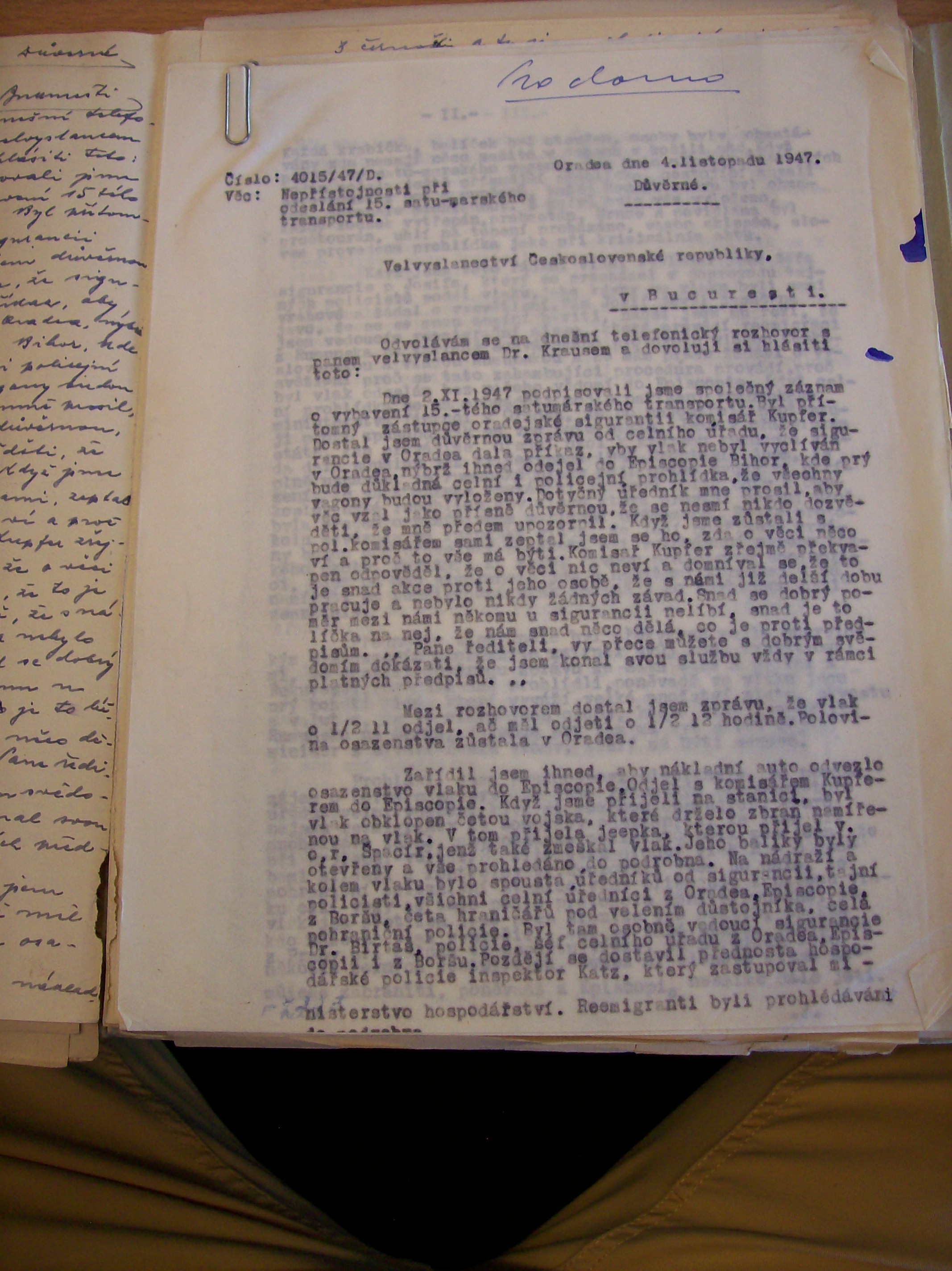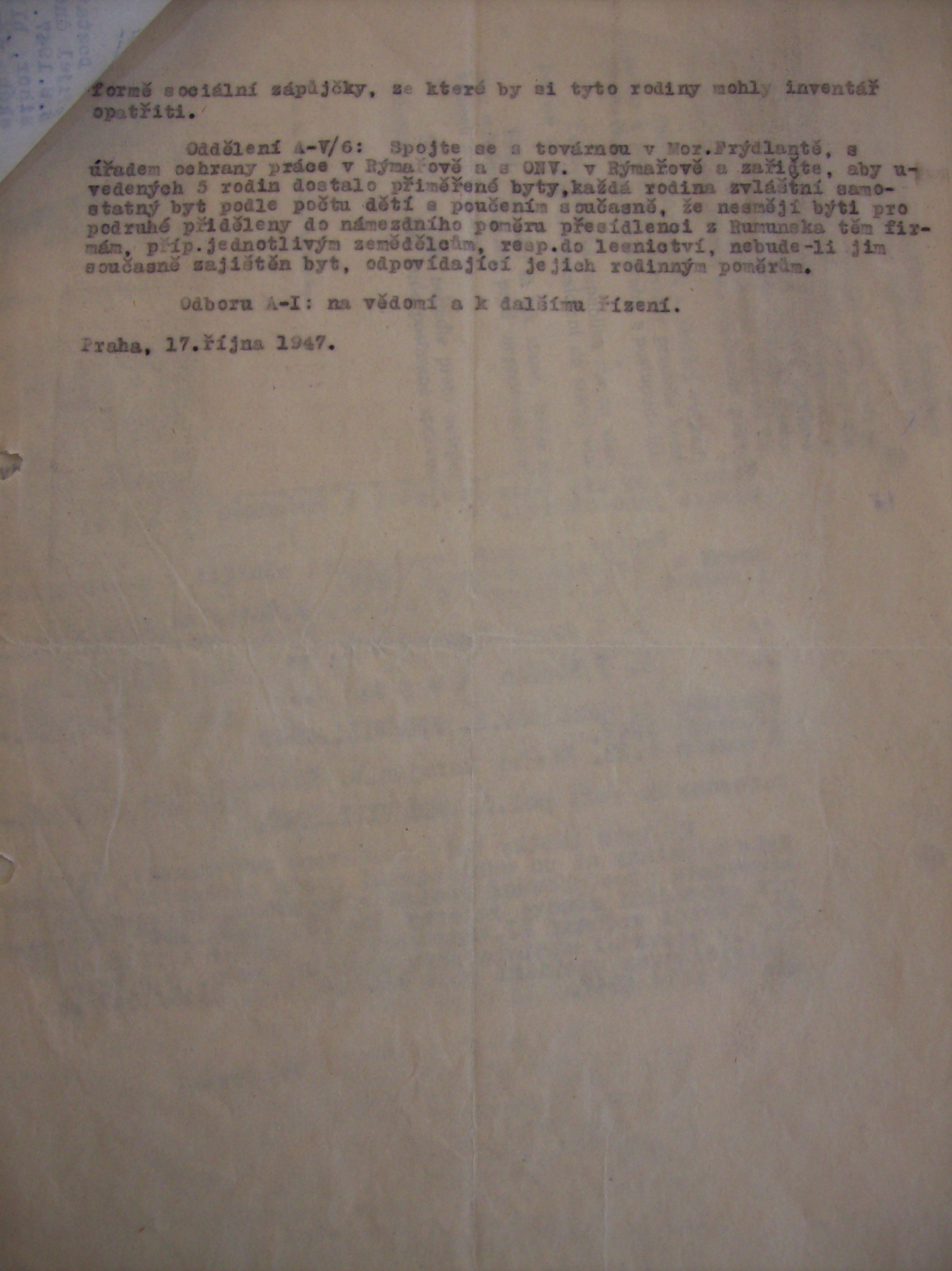 Na této stránce najdete archivní dokumenty ilustrující, jak v letech 1947-49 probíhala organizovaná reemigrace rumunských Slováků do ČSR. (Dokumenty vesměs pocházejí z archivu Československé přesídlovací komise v Oradeji, uloženého v Národním archivu ČR.)
