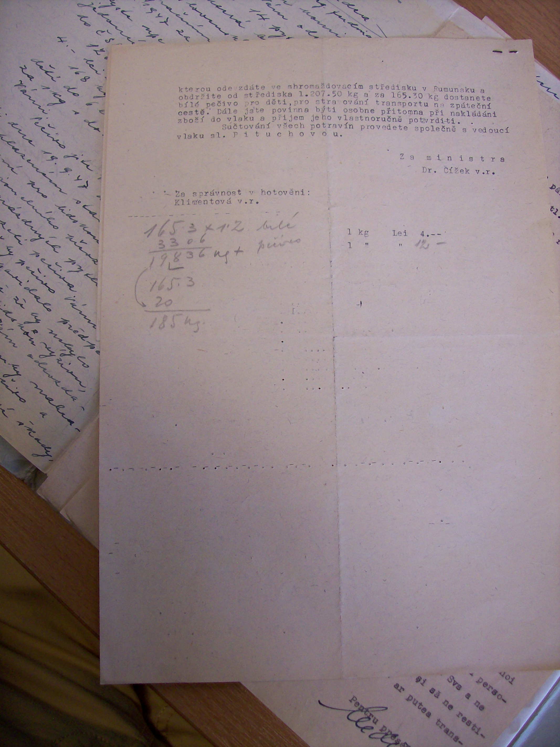 Zajistit zásobování transportu, který vezl při plném stavu v 50 vagonech cca 1000 osob po dobu delší než týden, bylo v poválečné potravinové situaci nemalým problémem.