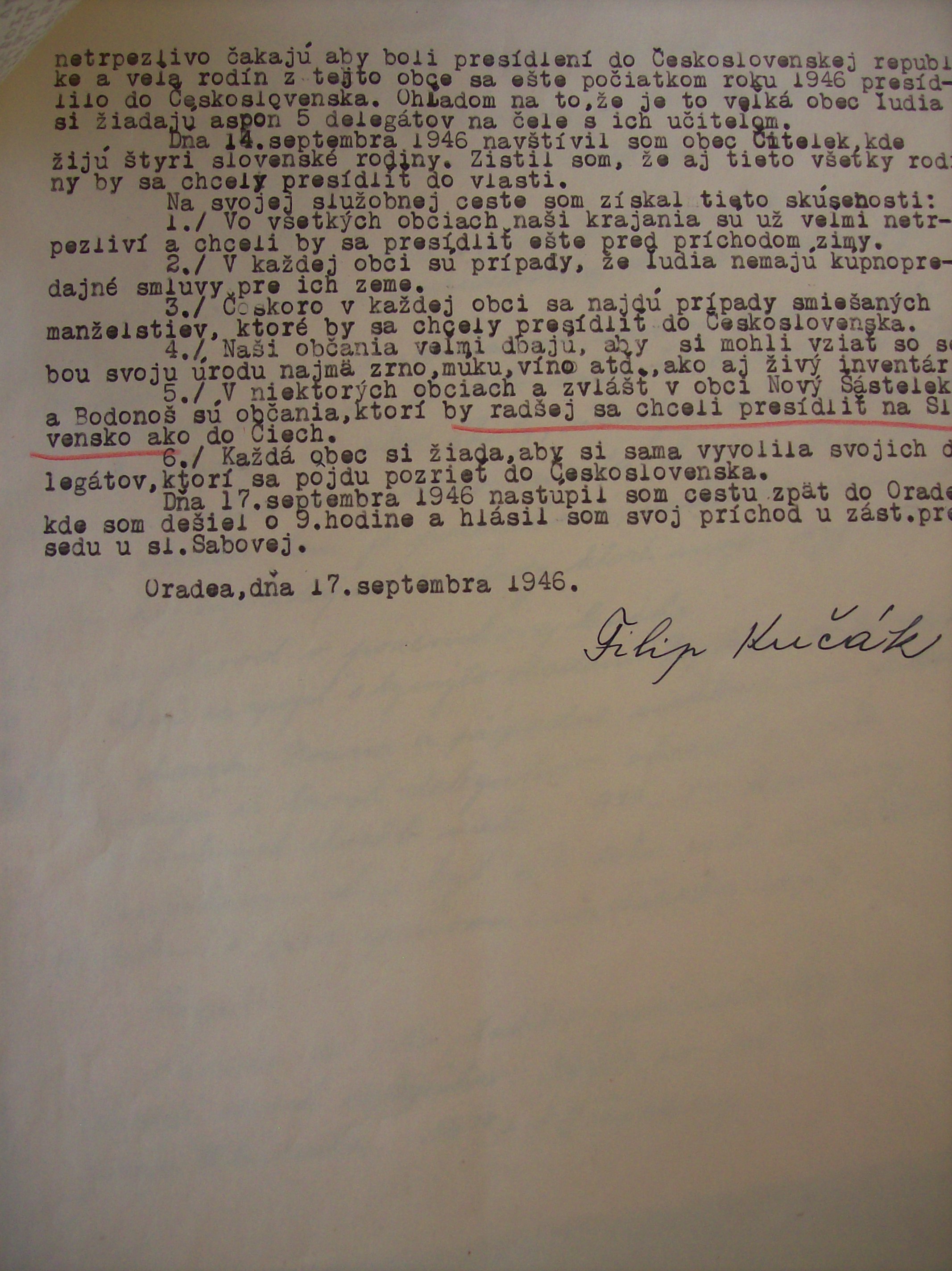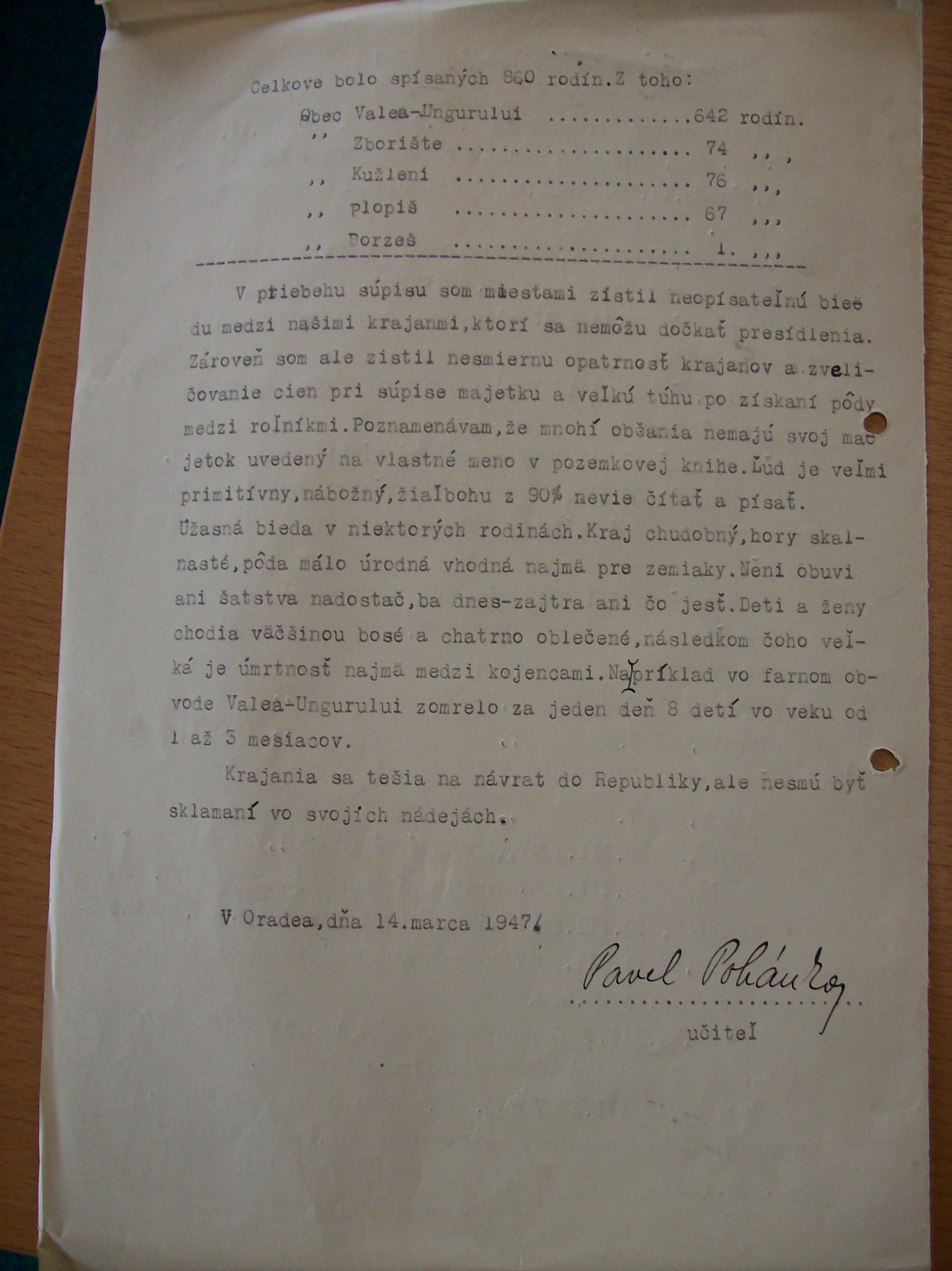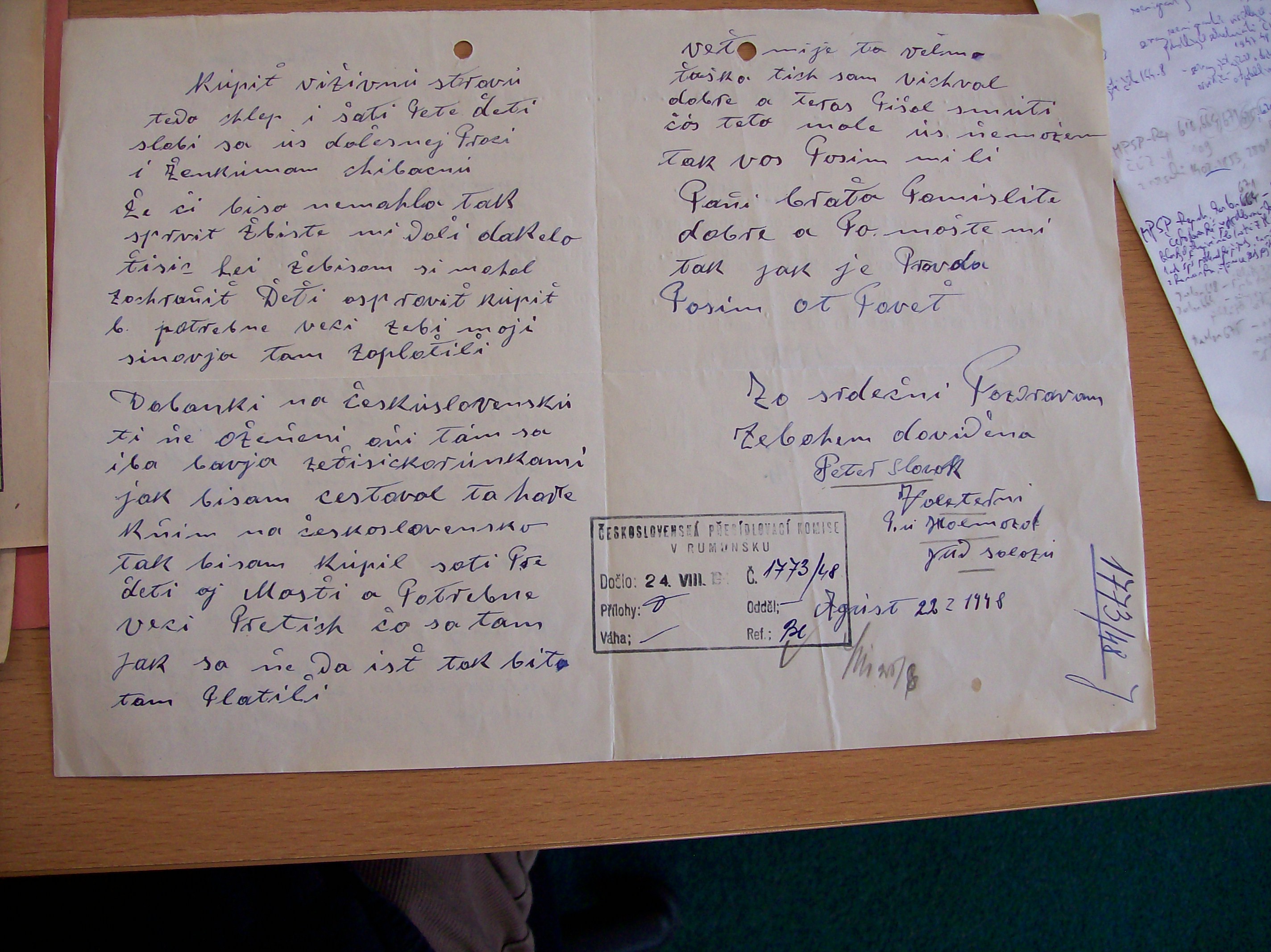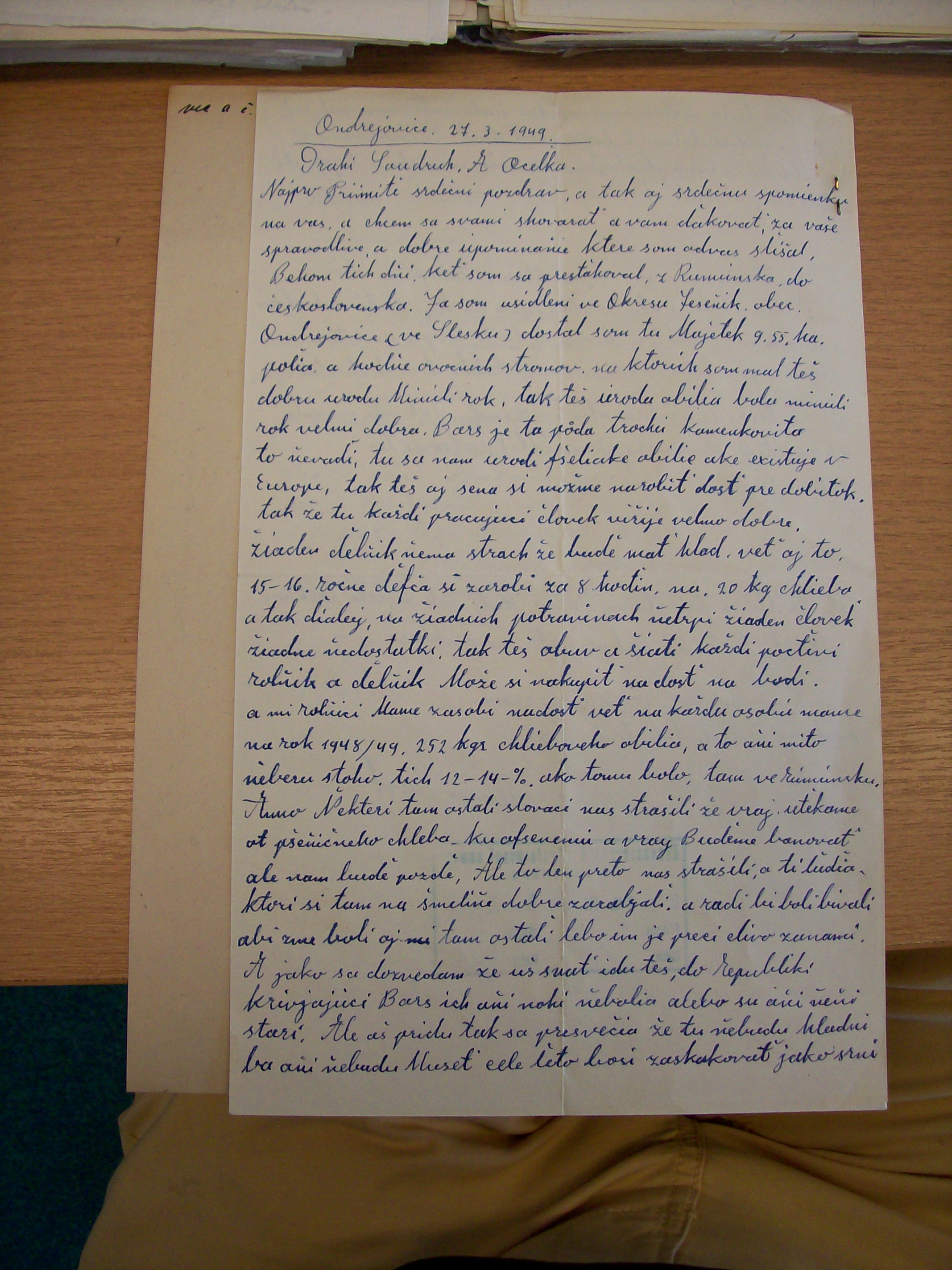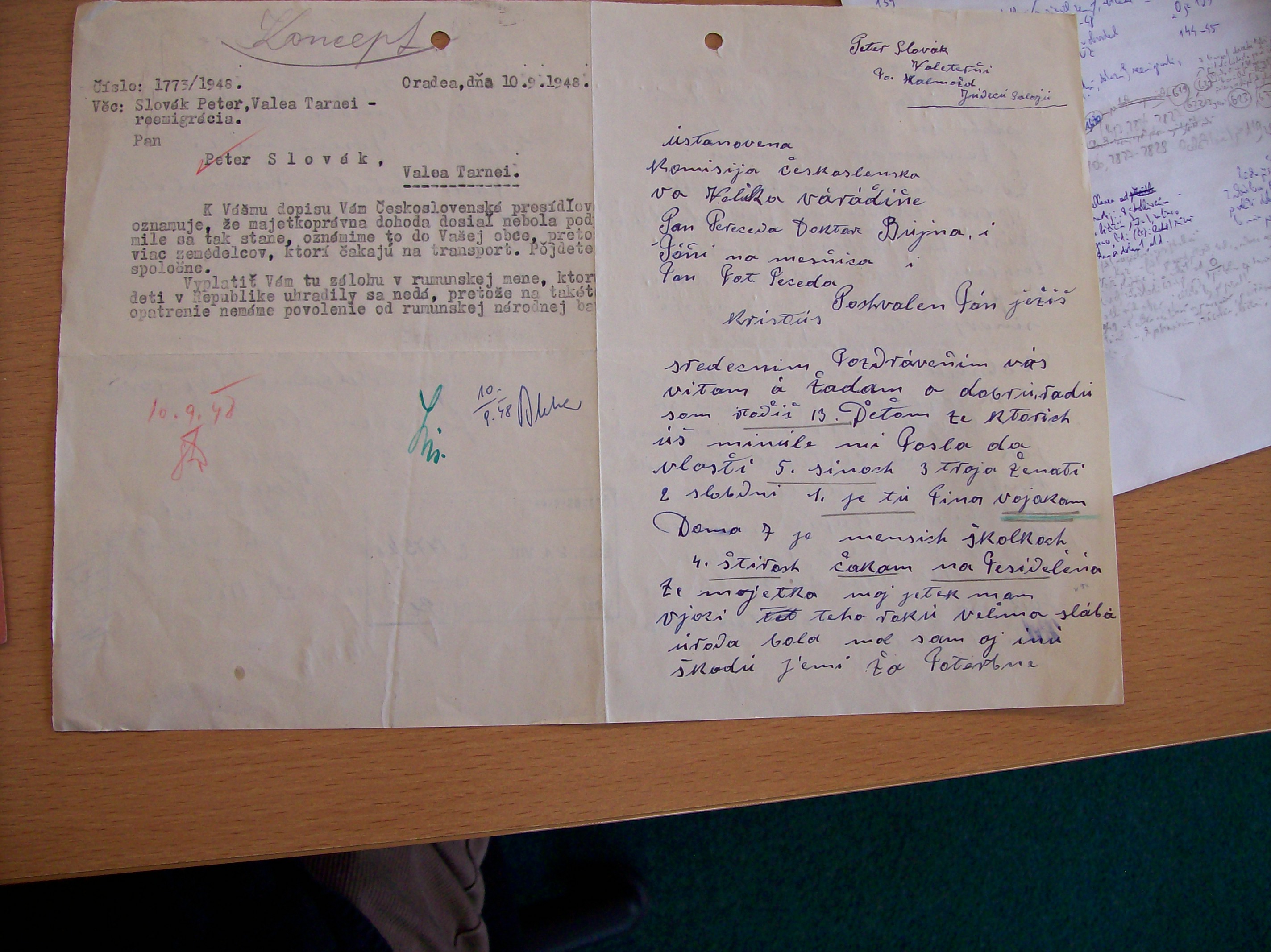O rozličném přijetí a zacházení, jehož se rumunským Slovákům po příchodu do Československa dostalo, vypovídají jejich pozdější dopisy na adresu jednotlivých referentů oradejské přesídlovací komise.