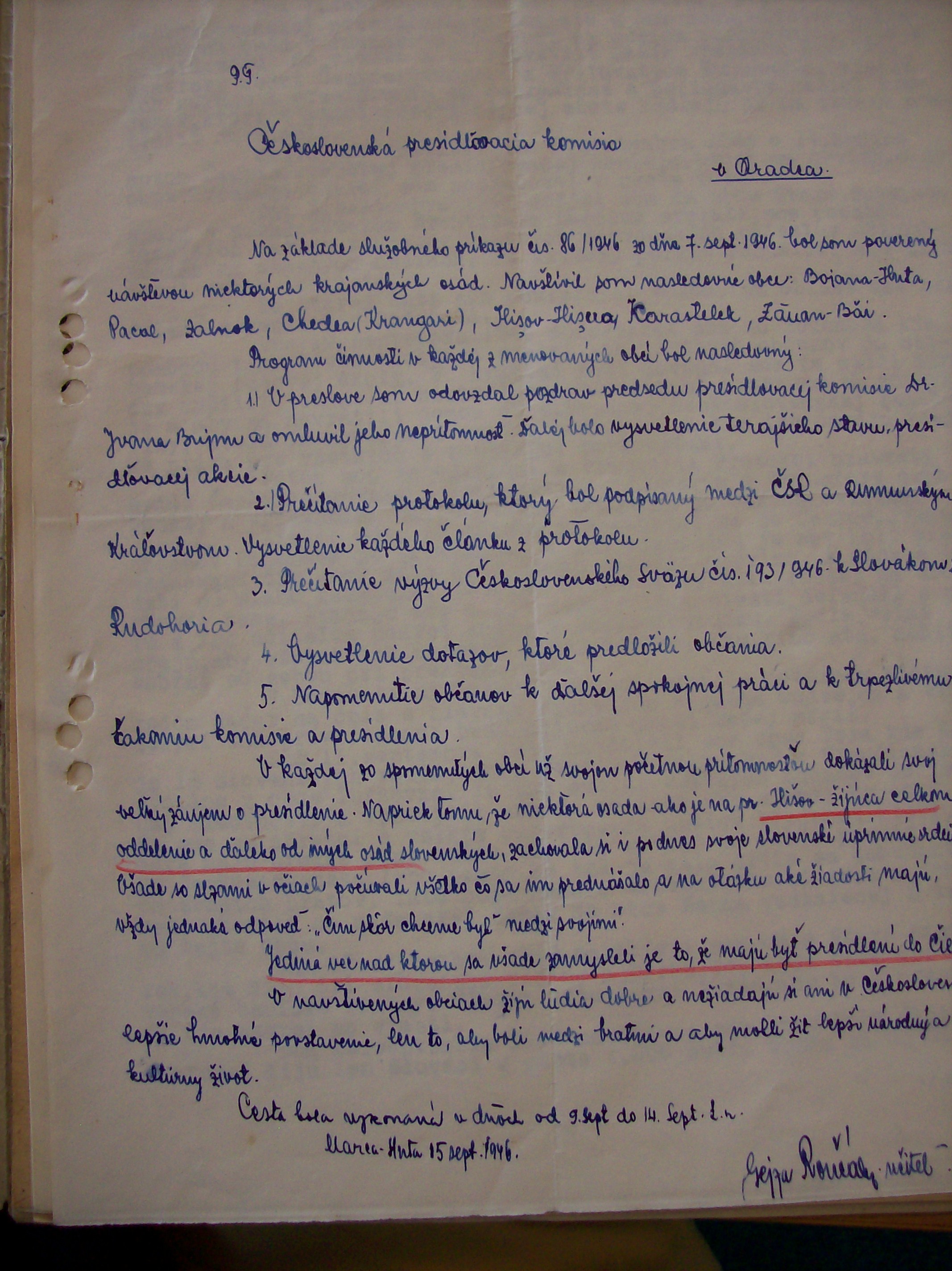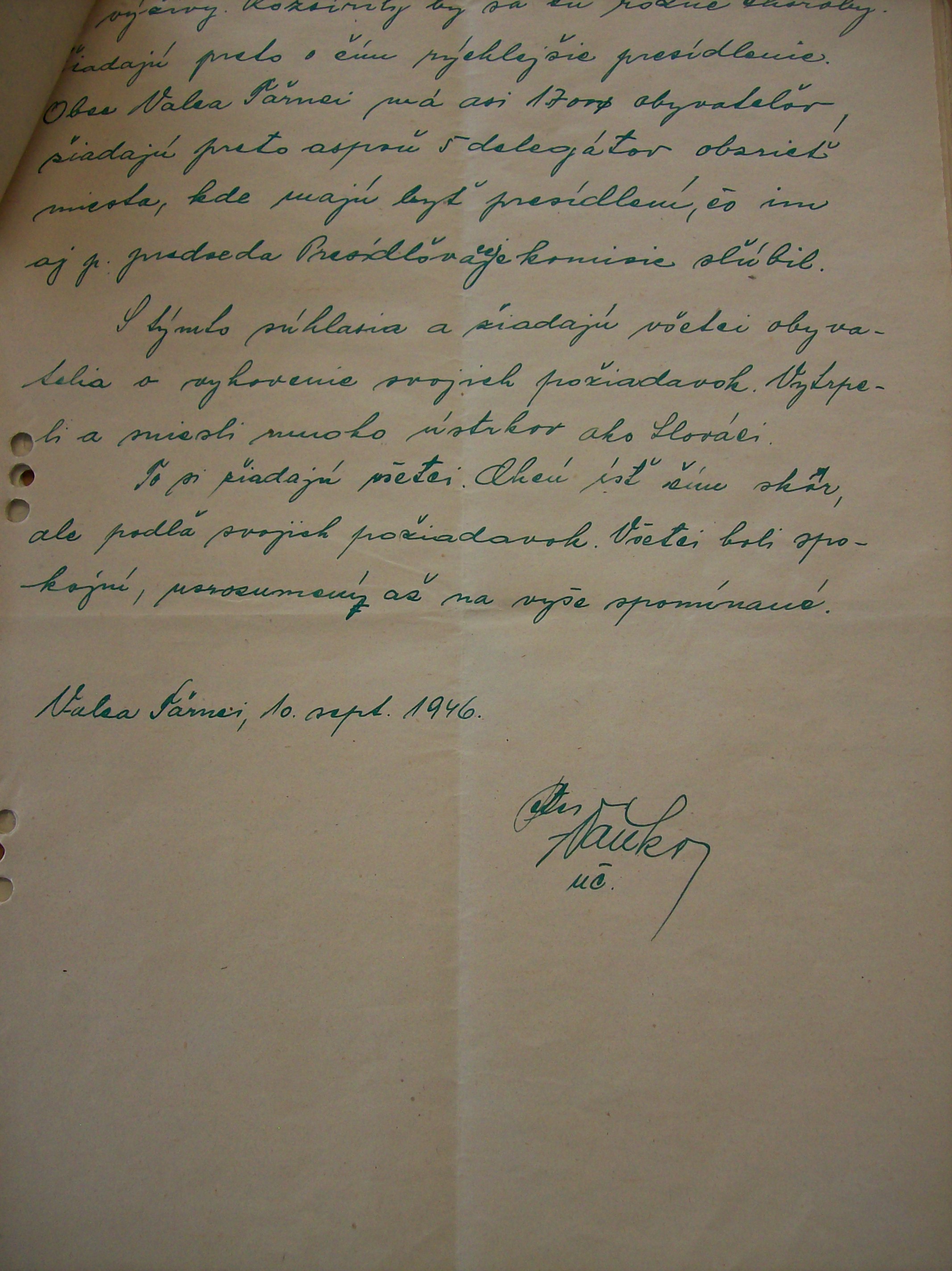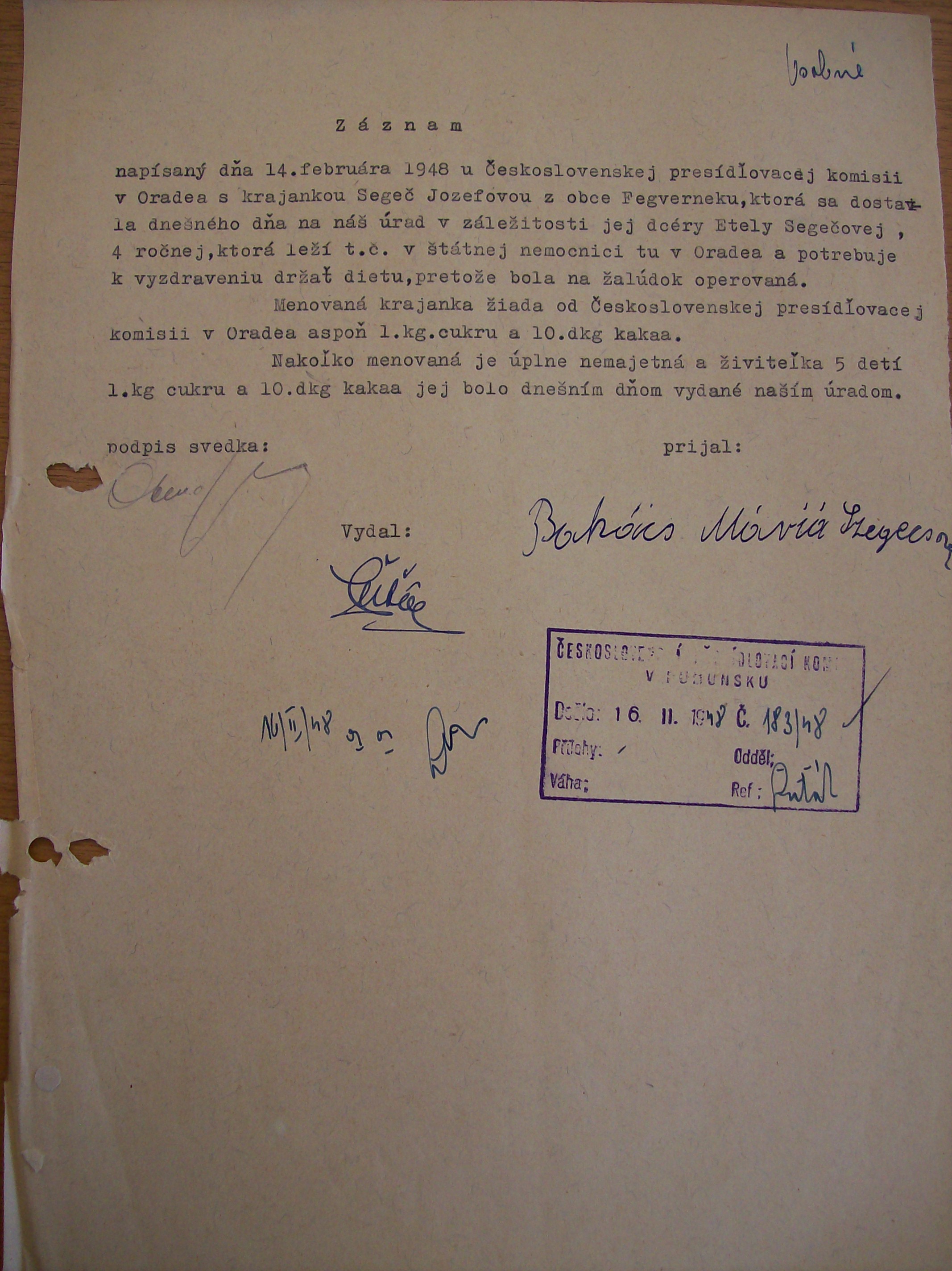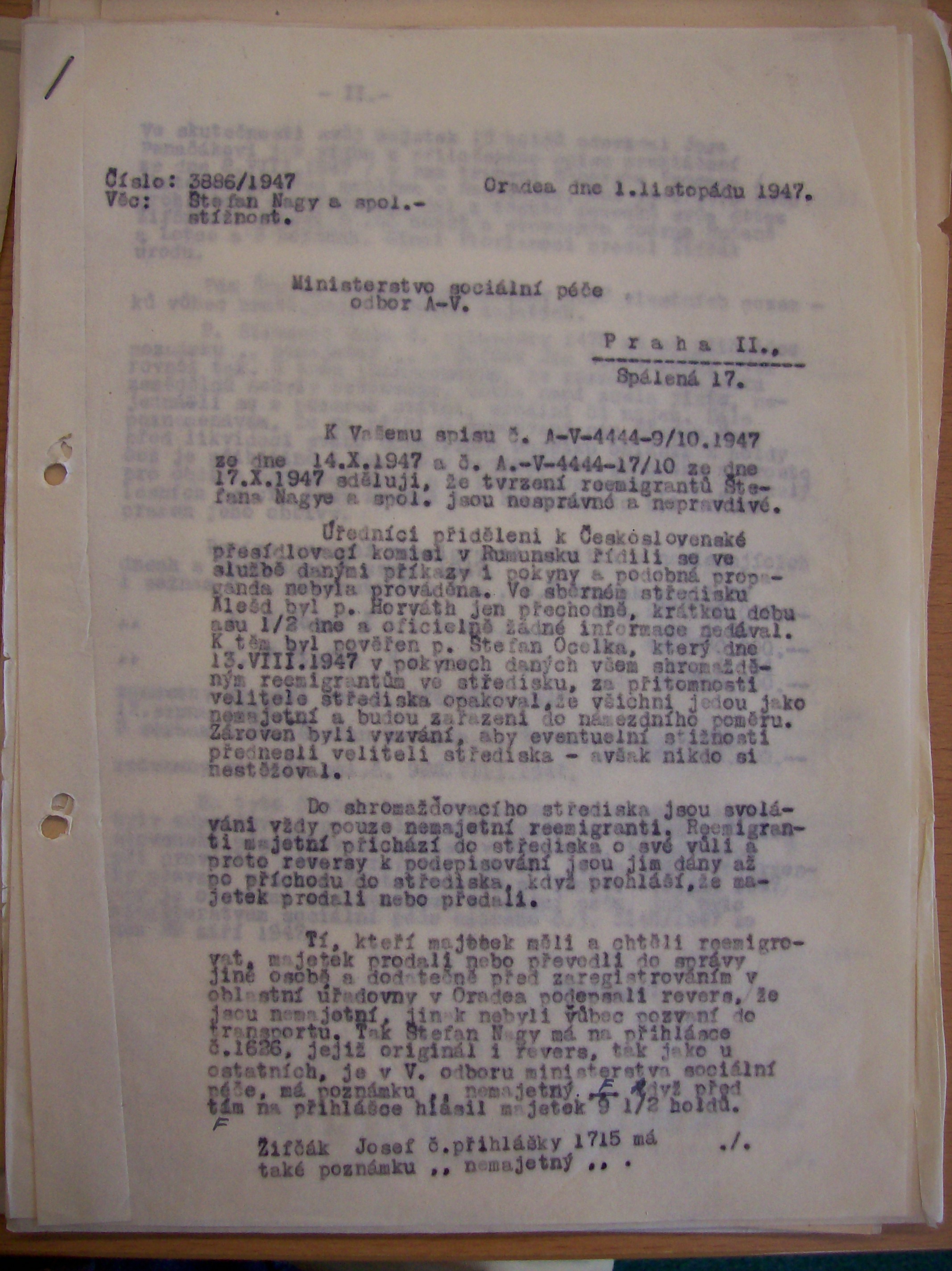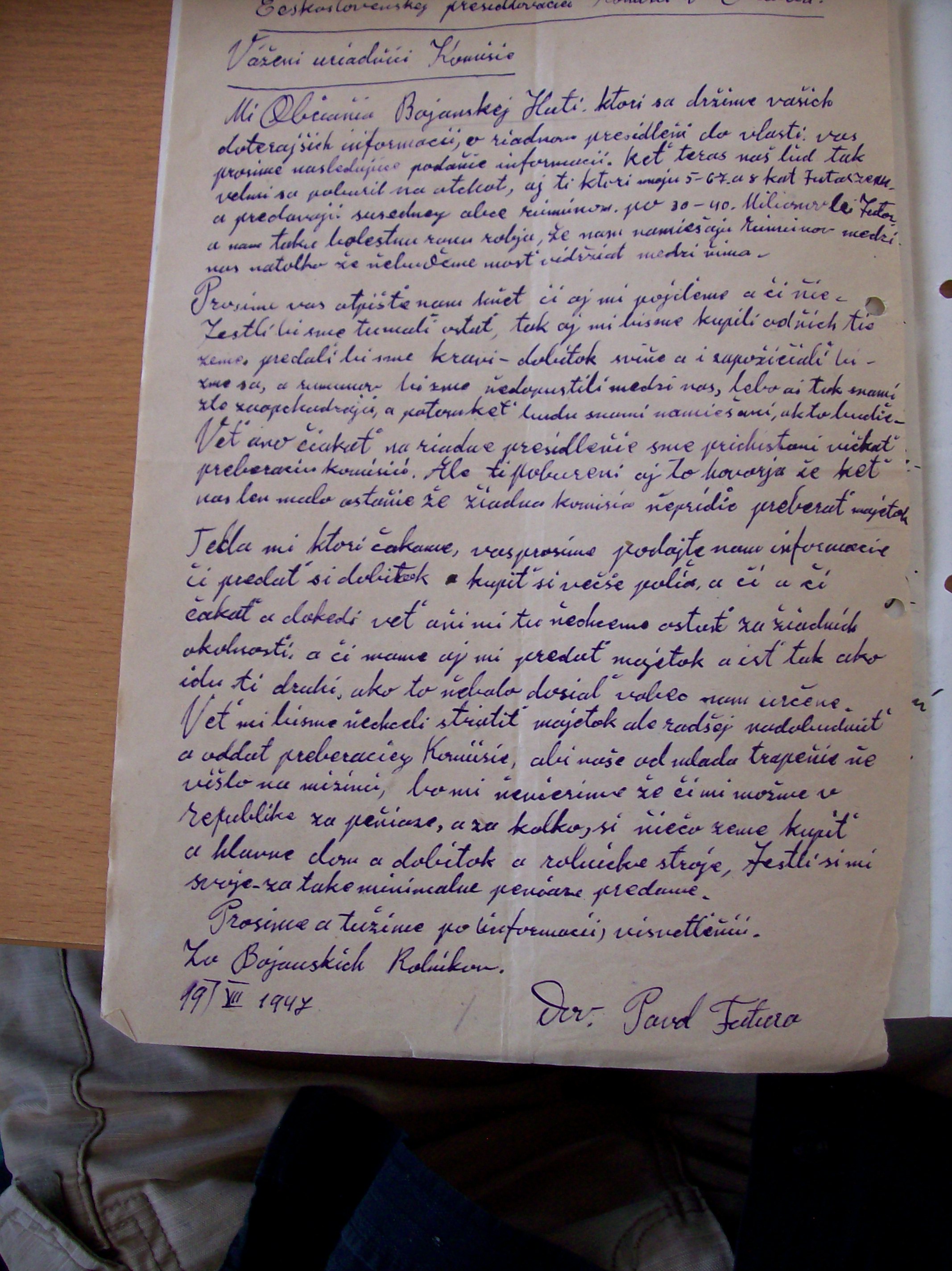 O rozličném přijetí a zacházení, jehož se rumunským Slovákům po příchodu do Československa dostalo, vypovídají jejich pozdější dopisy na adresu jednotlivých referentů oradejské přesídlovací komise.