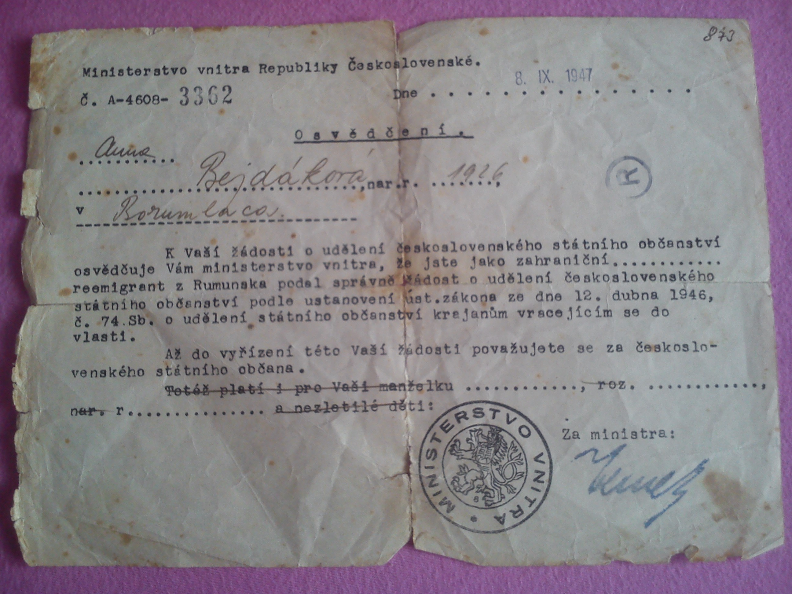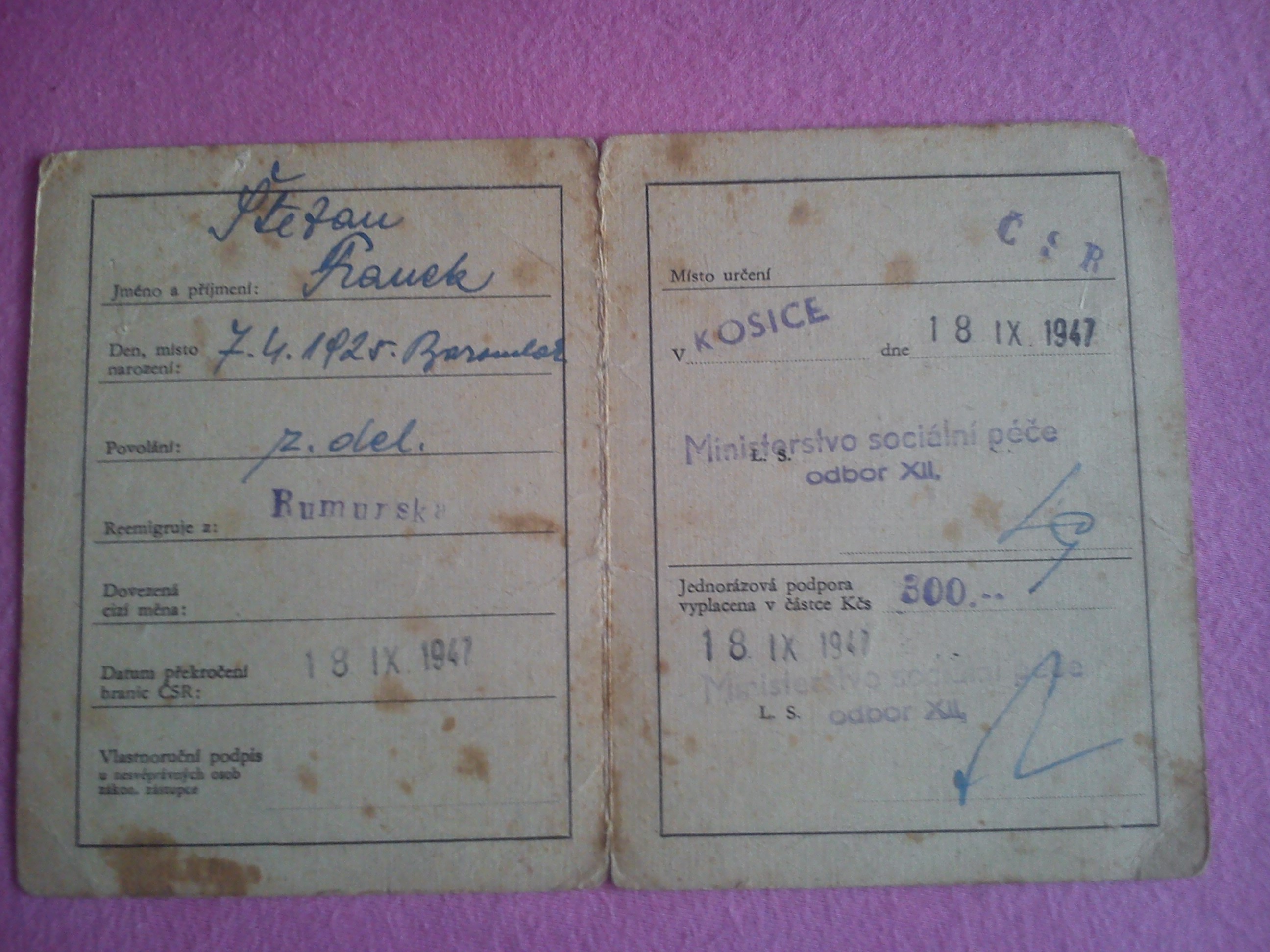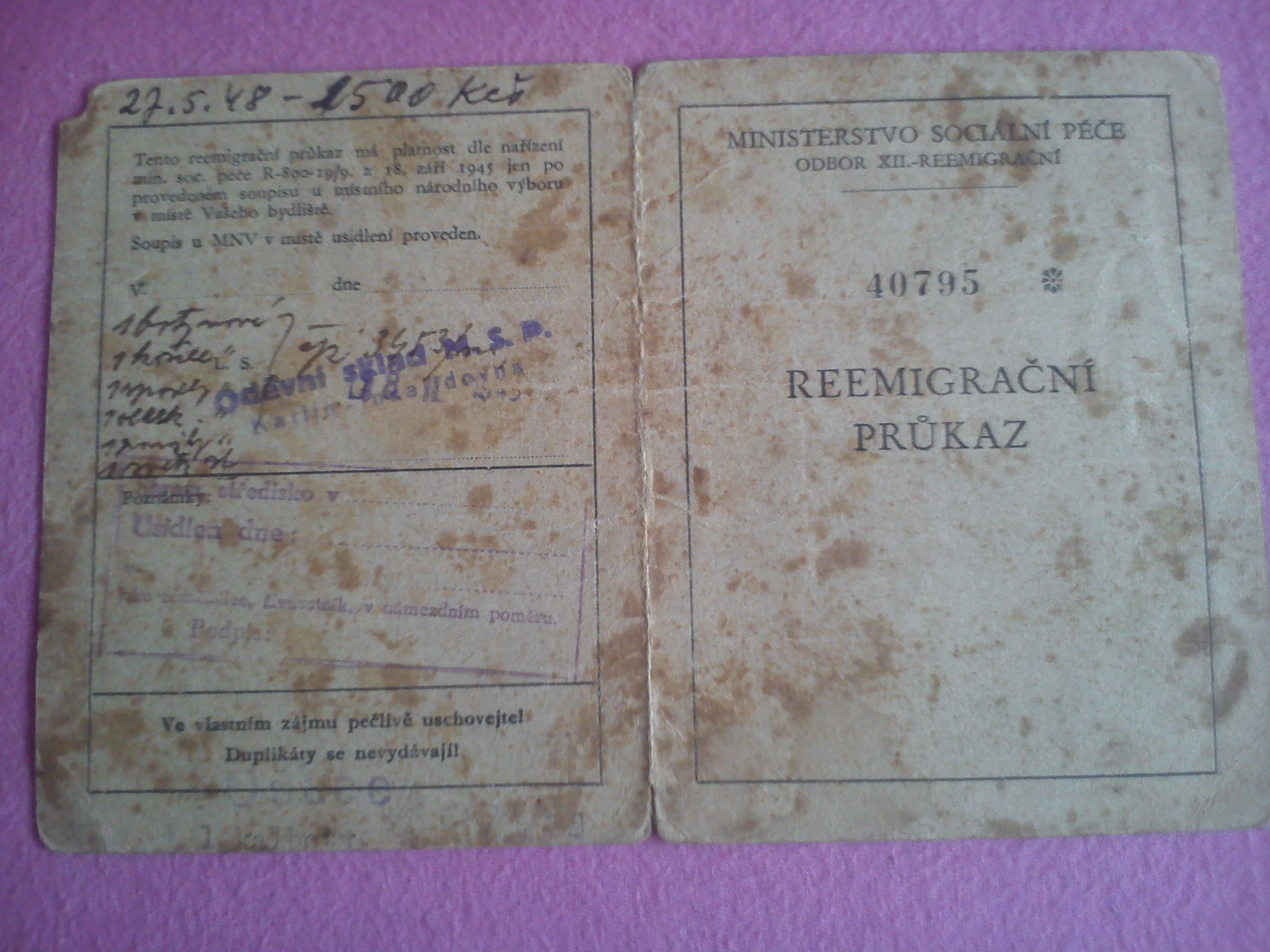 Reemigrační průkaz (poskytla Petra Varaďová)